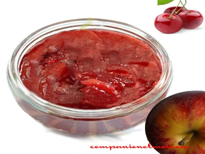 • Pelez, épépinez et coupez les pommes en petits morceaux puis dénoyautez les cerises.• Mettez les fruits et l'eau dans le bol du robot muni du Mélangeur. Démarrez le Programme Mijoté P2 pour 15 minutes.