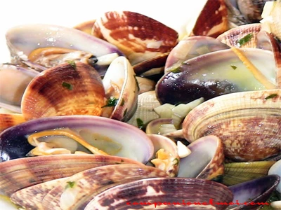 • Quelques heures avant, faites dégorger les palourdes dans de l’eau froide avec du sel. Changez l'eau en ajoutant du sel et nettoyez-les de temps en temps jusqu'à qu'il n'y ait plus de sable. Enfin, égouttez-les dans une passoire.• Dans le bol du robot mettez de l'eau jusqu'à la marque indiquée pour la cuisson. Insérez le Panier Vapeur et mettez les palourdes dans le Panier Vapeur. Fermez le couvercle et démarrez le Programme Vapeur P1. A la fin, toutes les palourdes doivent être ouvertes. Mettez-les dans un plat et arrosez de jus de citron.
